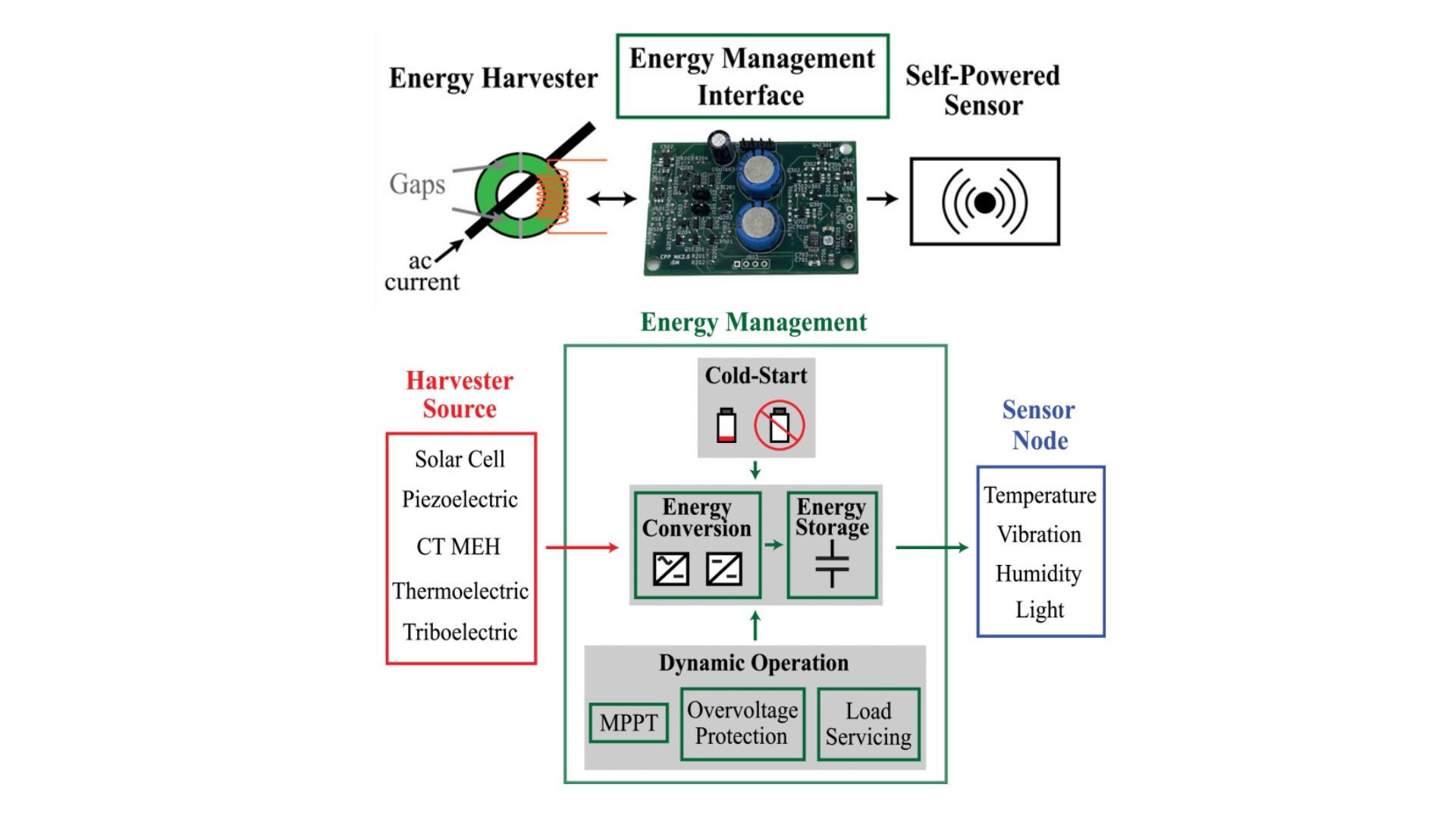 這款自供電的傳感器共分為以下幾個部分:能量收集器、能量存儲、電源管理、傳感電路和通信模塊。為了避免使用電池,這款傳感器采用了內(nèi)部儲能技術,包括一系列電容器。為了讓能夠儲存設備開啟和開始收集電能所需的能量,但又足夠小,研究團隊重新設計了電容器,這款電容器不需要太長時間就可以充滿電。